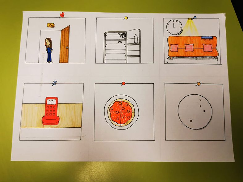 Pero lo más interesante llegó después: el alumnado de FP les explicó qué es un storyboard, para qué sirve y cómo se convierte en la base visual de cualquier película de animación. Compartieron ejemplos reales, trucos y detalles que normalmente solo se ven “entre bambalinas” en el mundo audiovisual. Los de 2º de ESO escucharon con una atención que pocas veces vemos a primera hora de la mañana.