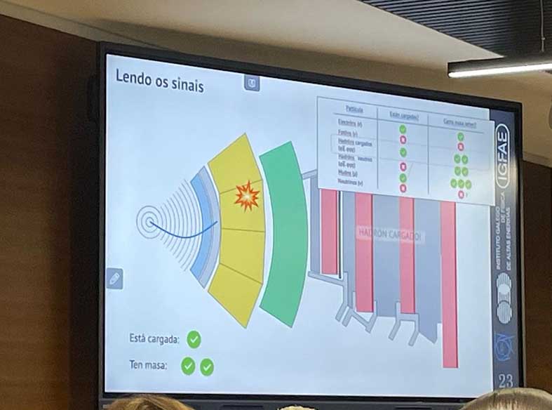 La masterclass consistió en varias charlas y una sesión práctica. Las charlas se basaron en una introducción a la física de partículas y en concreto sobre aceleradores de partículas y otra charla sobre género y diversidad en la física. Y ya por último, han tenido una videoconferencia con el CERN y con universidades de otros países.