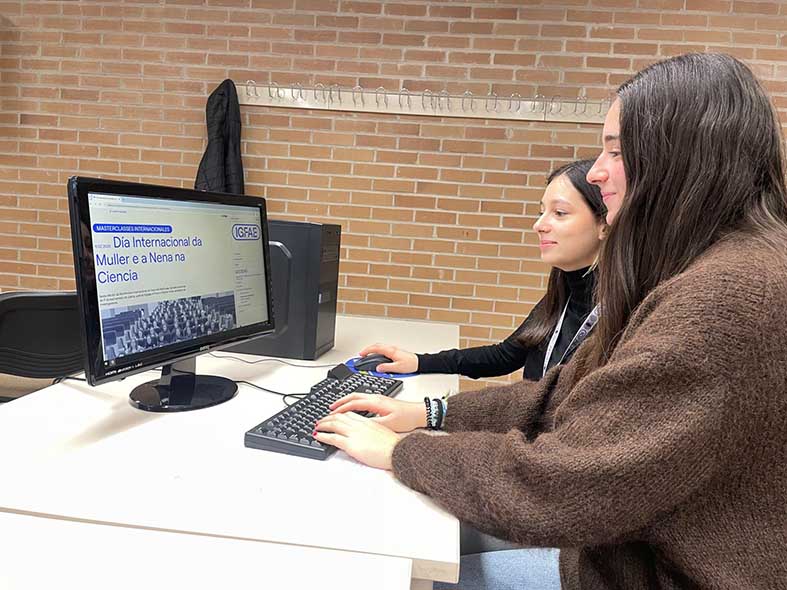 El pasado miércoles 11 de febrero dos de nuestras alumnas de 1º de Bachillerato, Antía Gandoy y Martina Castro, asistieron a una masterclass del IGFAE (Instituto Galego de Física de Altas Enerxías) sobre Física de Partículas, en la que estuvieron en contacto directo con la Organización Europea para la Investigación Nuclear (CERN) en Ginebra.