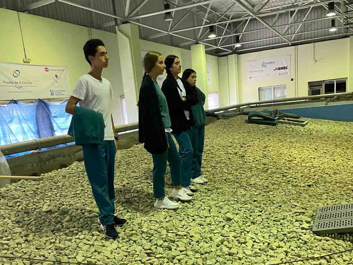 Accedieron también al Laboratorio de Puertos y Costas que cuenta con una piscina donde simulan el efecto del oleaje y comprueban, a escala, la resistencia de elementos portuarios como diques, frente a las fuerzas del mar; pero en este momento no se estaba llevando a cabo ningún ensayo.