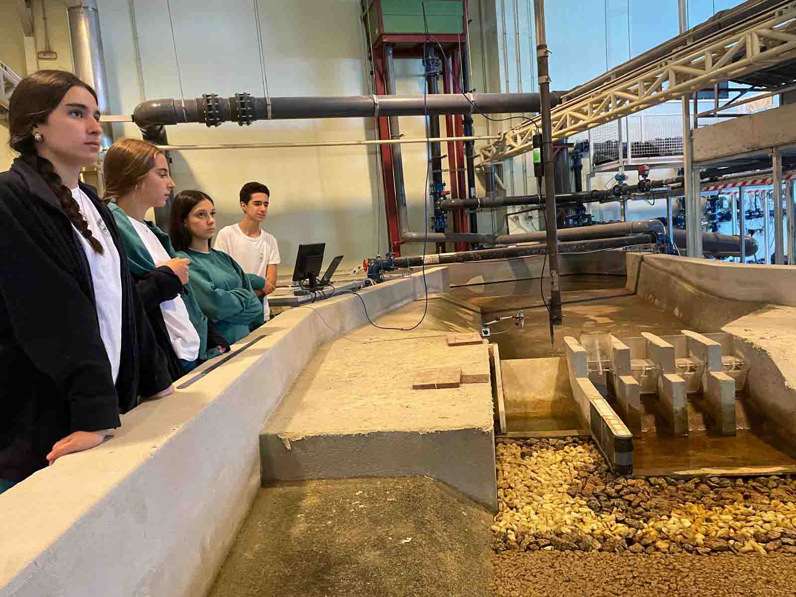 En el Laboratorio de Hidráulica, vieron un simulador de lluvia, la recreación de calles urbanas para ver el efecto de la misma y el estudio de nuevas alternativas más sostenibles, como la creación de tejados vegetales. También vieron el modelo físico MEDUSA, una instalación puntera que modela el ciclo urbano del agua de la ciudad de A Coruña, así como una maqueta de un embalse en el que realizan ensayos previos a la futura construcción de la misma