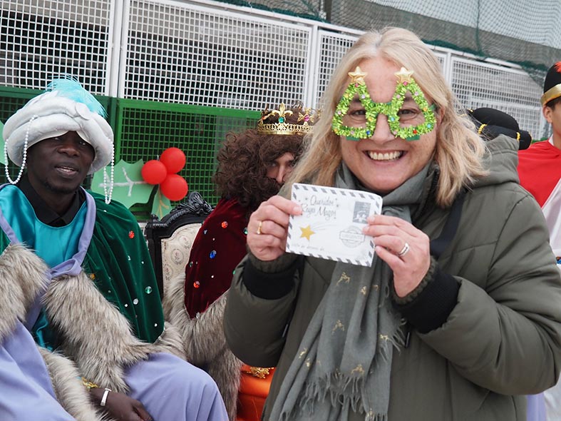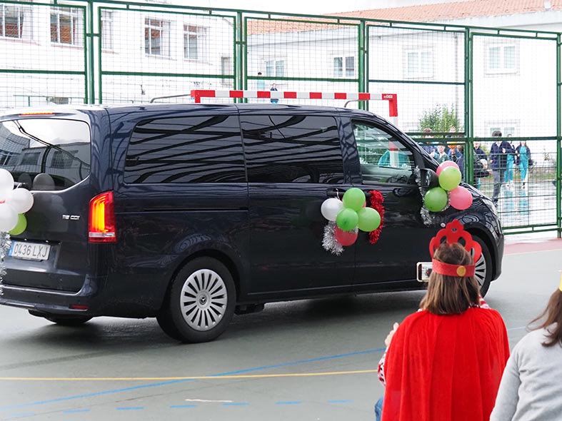 Los Reyes Magos llegaron en una furgoneta muy especial, decorada con globos para la ocasión. Les recibimos en el patio y después, por fin, pudimos entregarles nuestras cartas, compartiendo sonrisas, miradas de emoción y muchos nervios.