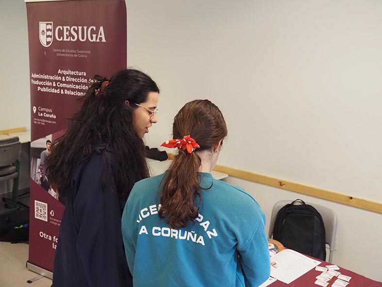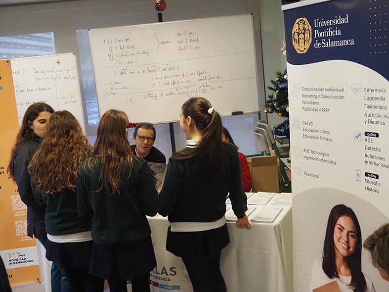 Una oportunidad única para nuestros alumnos y alumnas de poder recibir una atención personalizada nuestro propio Centro de prestigiosas universidades como la Universidad de A Coruña (UDC), Universidad de Vigo (UVIGO), CESUGA, Universidad Intercontinental de la Empresa (UIE), Marcelo Macías, Universidad Antonio de Nebrija, U-TAD, Centro Universitario de Tecnología y Arte Digital, Universidad de Deusto, Universidad de Navarra, Universidad Europea de Madrid, Universidad de Comillas (ICADE), Universidad Pontificia de Salamanca, Universidad Francisco de Vitoria, Universidad San Pablo CEU y la Universidad Católica de Murcia. La presencia de estas universidades, así como de las Fuerzas Armadas, Atlantic Air Academy, Air Hostess, Guardia Civil, Policía Nacional, y el Centro Superior de Hostelería de Galicia es un ejemplo más de la riqueza de la oferta de continuidad educativa en España, con cuya presencia una vez más, hemos tenido el privilegio de contar.